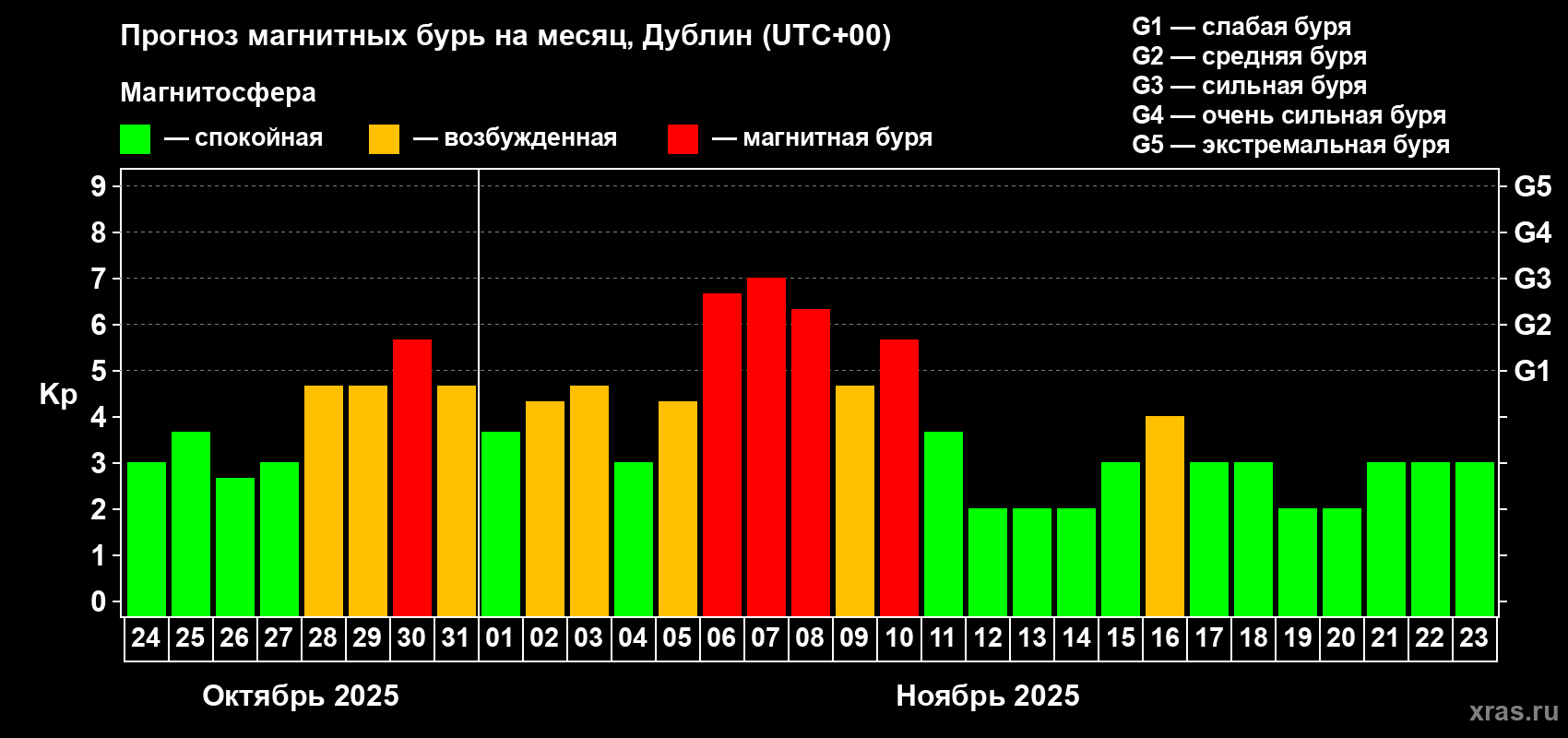 Прогноз магнитных бурь в Дублине — 24 октября 2025 года