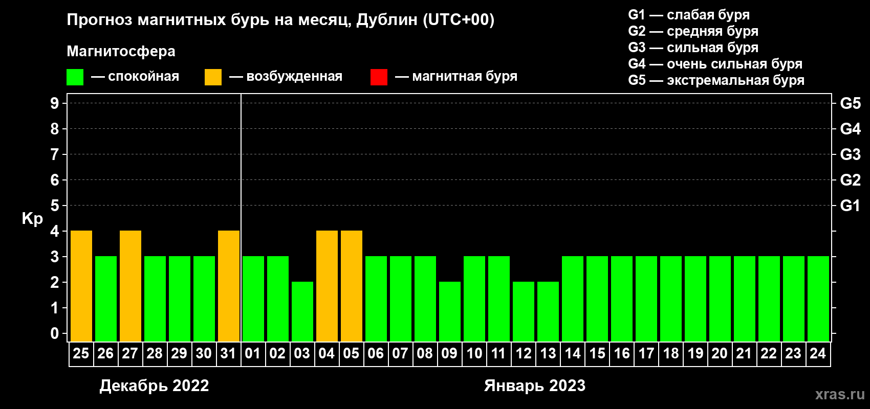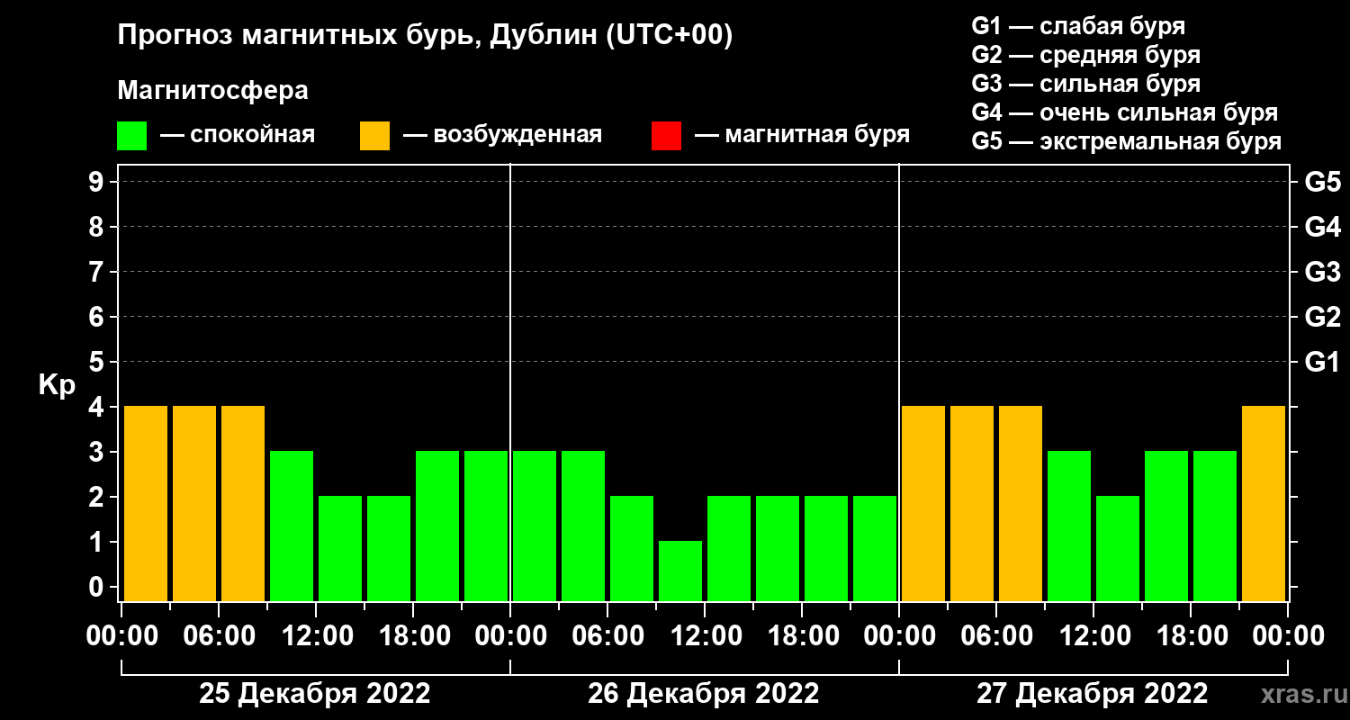 Прогноз магнитных бурь в Дублине — 25 декабря 2022 года