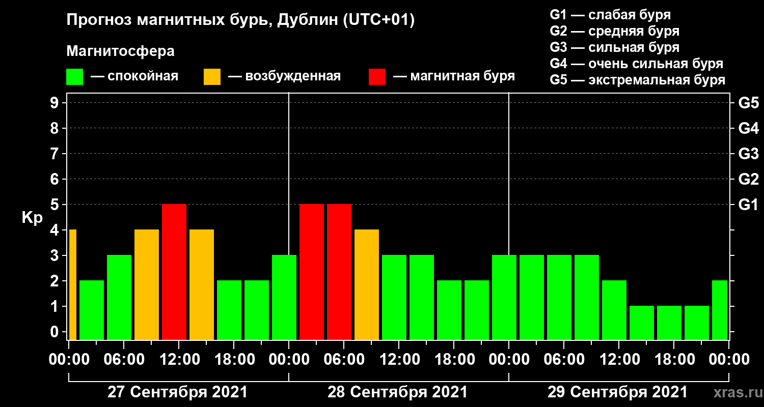Прогноз магнитных бурь в Дублине — 27 сентября 2021 года
