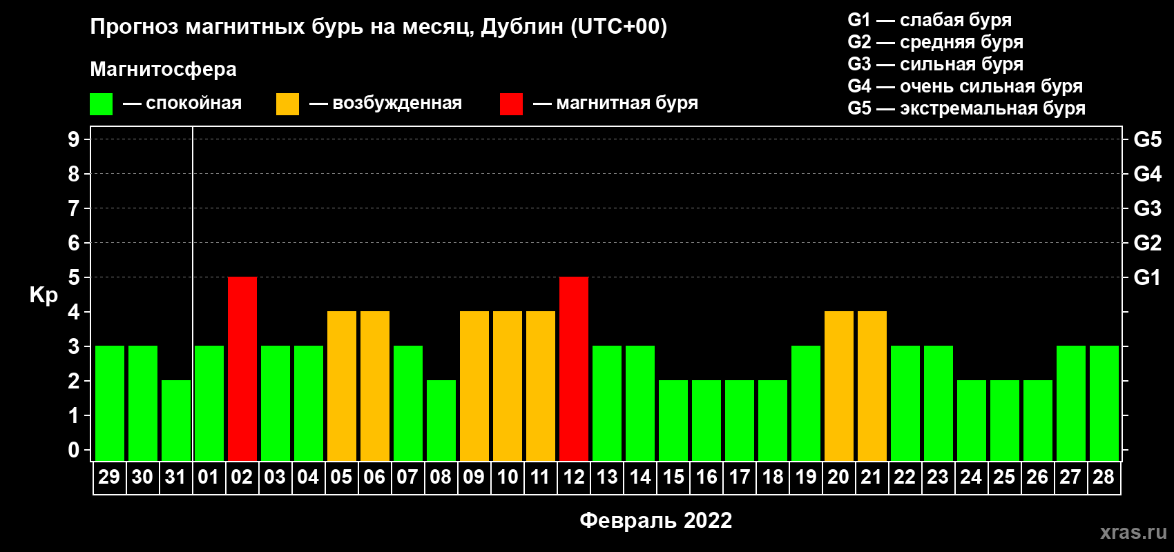 Прогноз магнитных бурь в Дублине — 29 января 2022 года