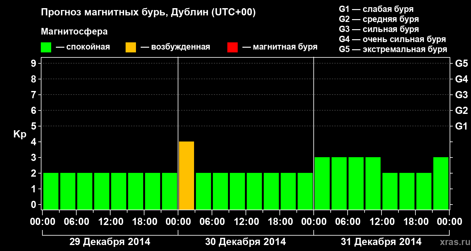 Прогноз магнитных бурь в Дублине — 29 декабря 2014 года