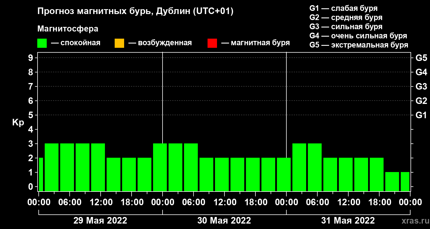 Прогноз магнитных бурь в Дублине — 29 мая 2022 года