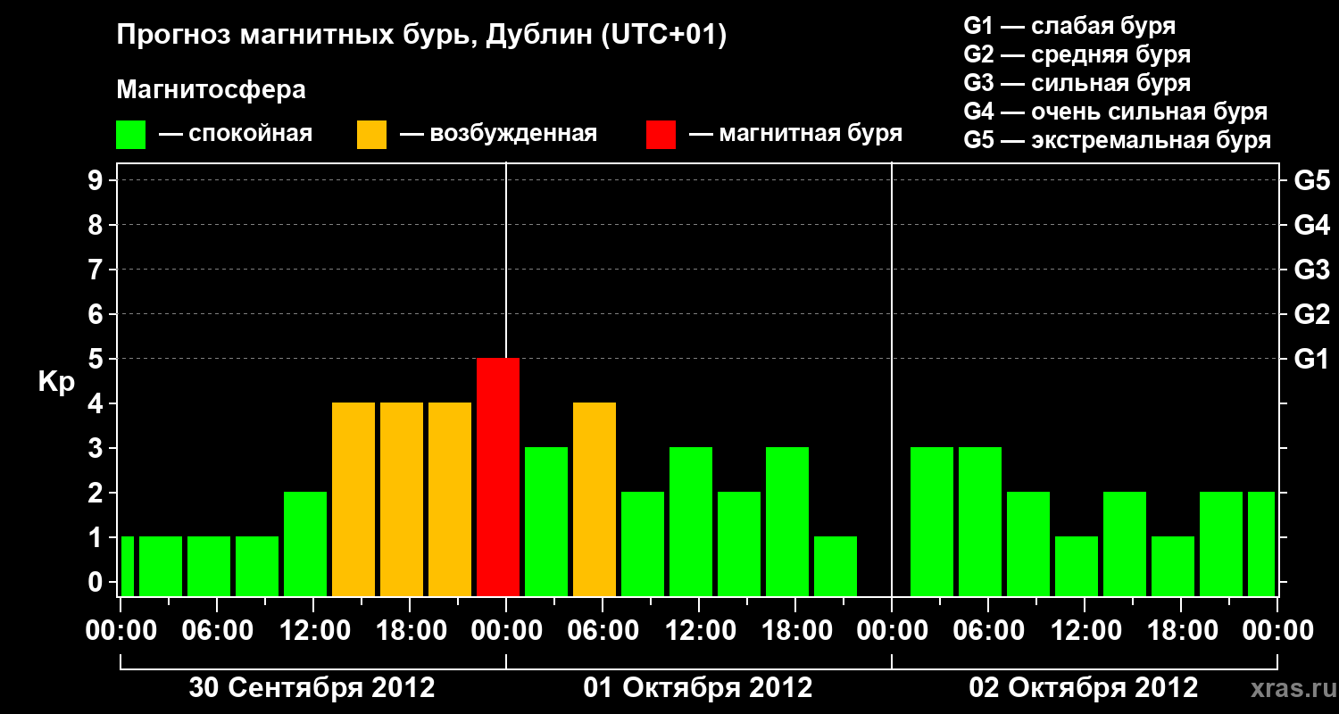 Прогноз магнитных бурь в Дублине — 30 сентября 2012 года