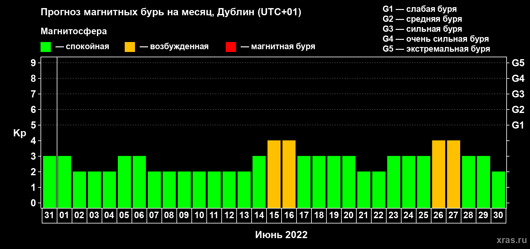 Прогноз магнитных бурь в Дублине — 31 мая 2022 года