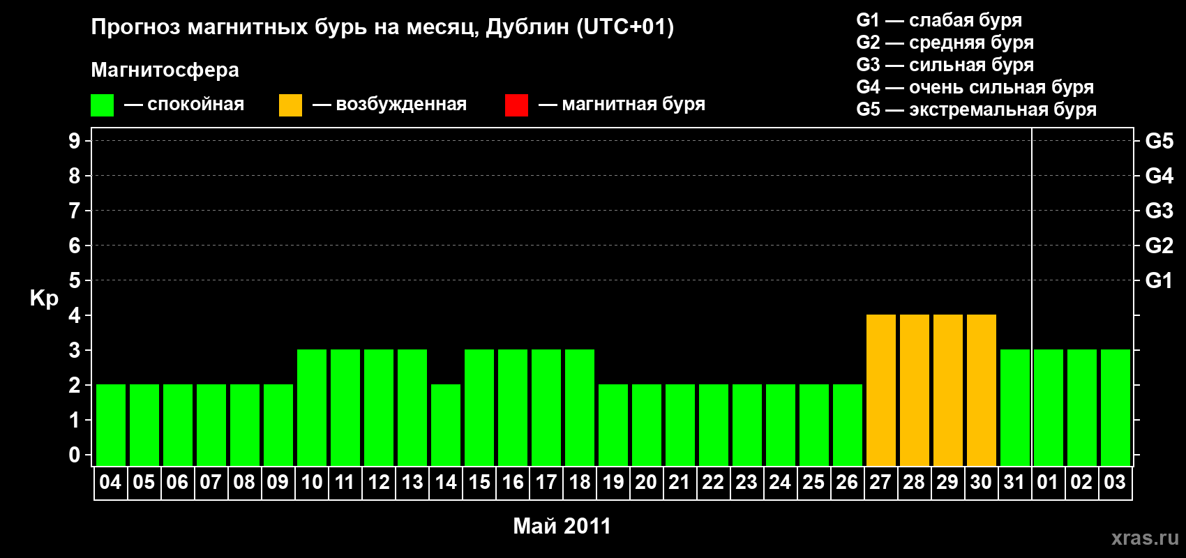 Прогноз магнитных бурь в Дублине — 4 мая 2011 года