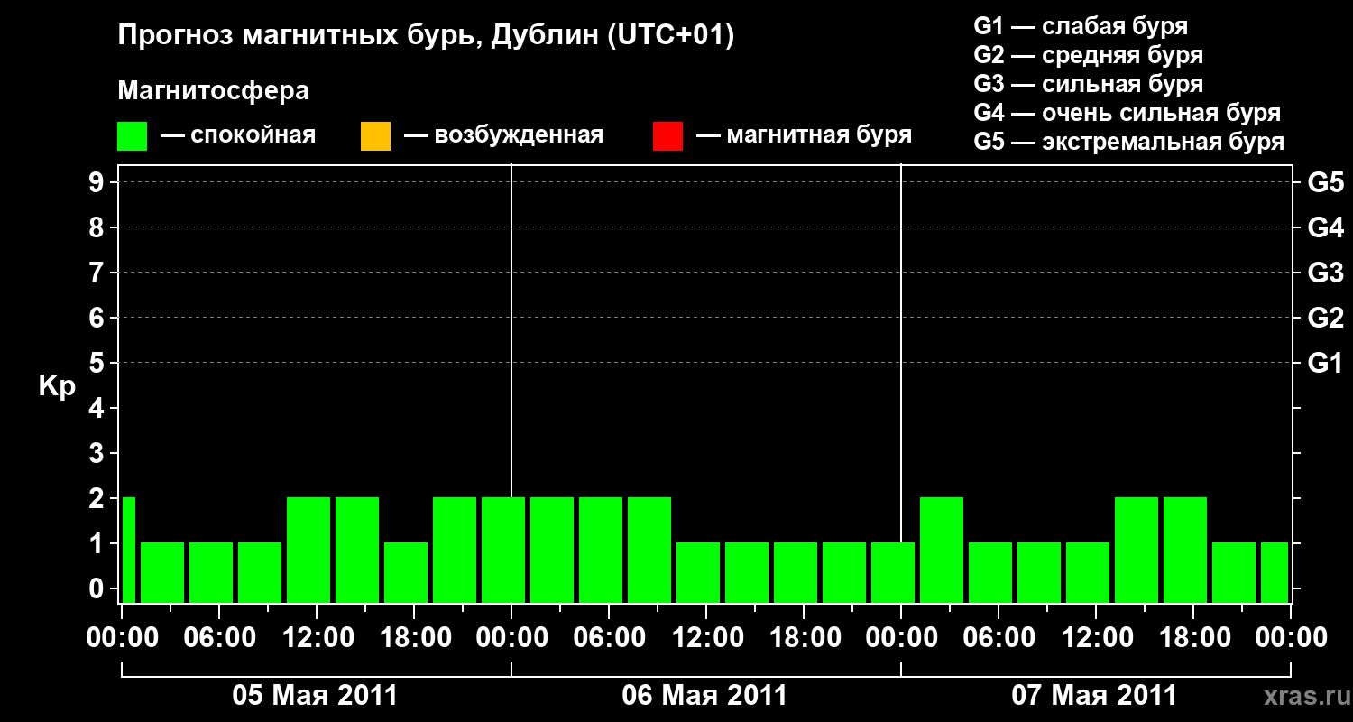 Прогноз магнитных бурь в Дублине — 5 мая 2011 года