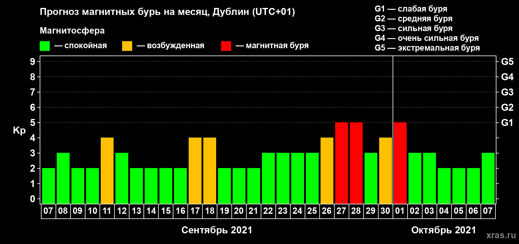 Прогноз магнитных бурь в Дублине — 7 сентября 2021 года