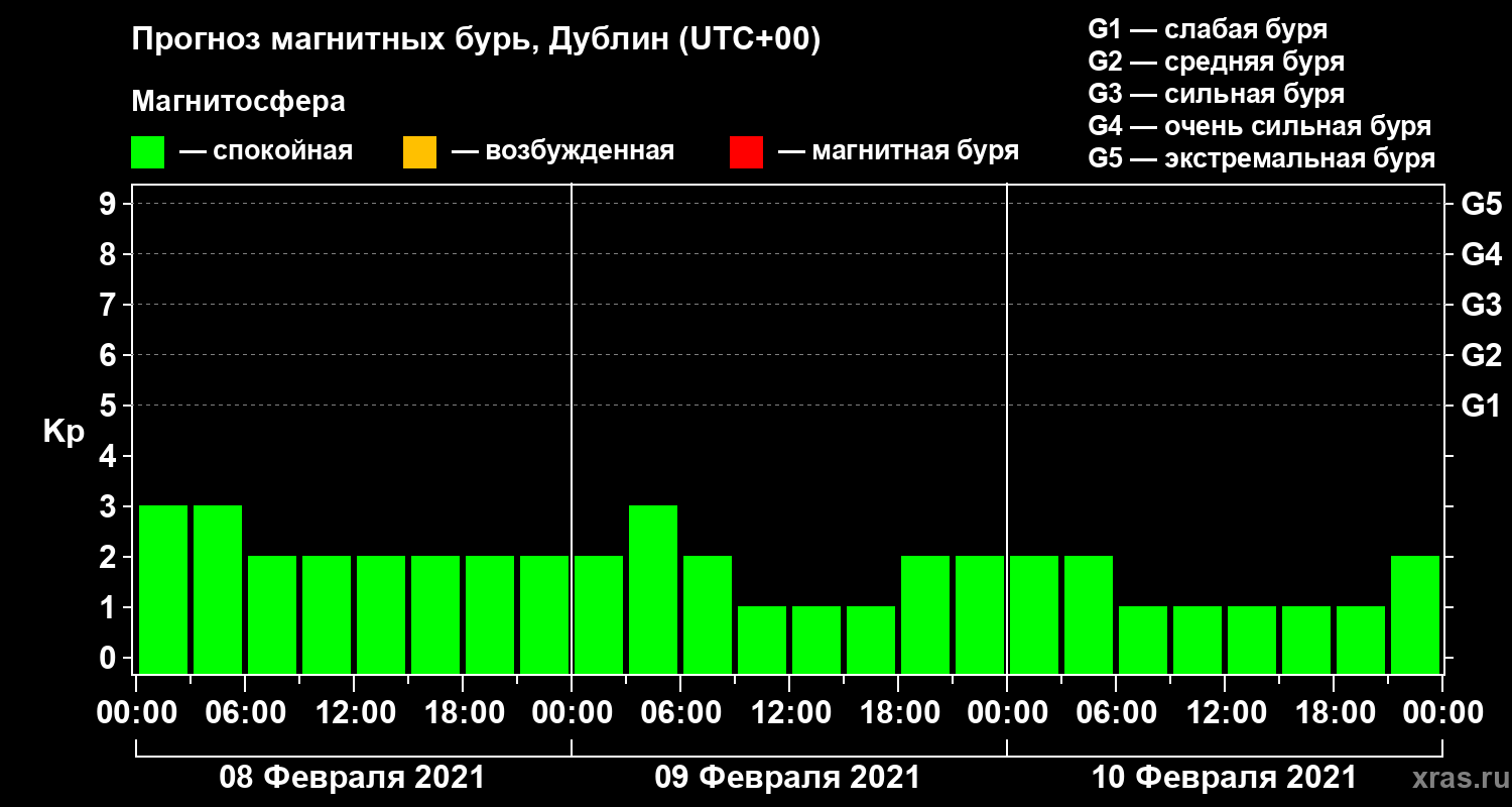 Прогноз магнитных бурь в Дублине — 8 февраля 2021 года