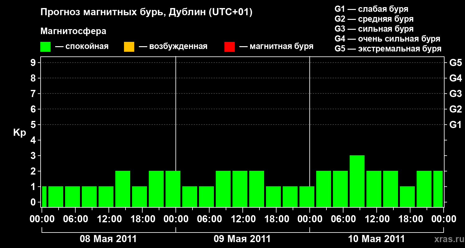 Прогноз магнитных бурь в Дублине — 8 мая 2011 года