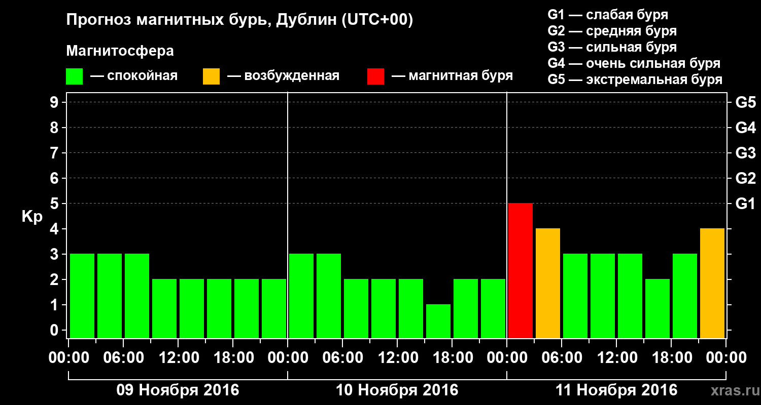 Прогноз магнитных бурь в Дублине — 9 ноября 2016 года