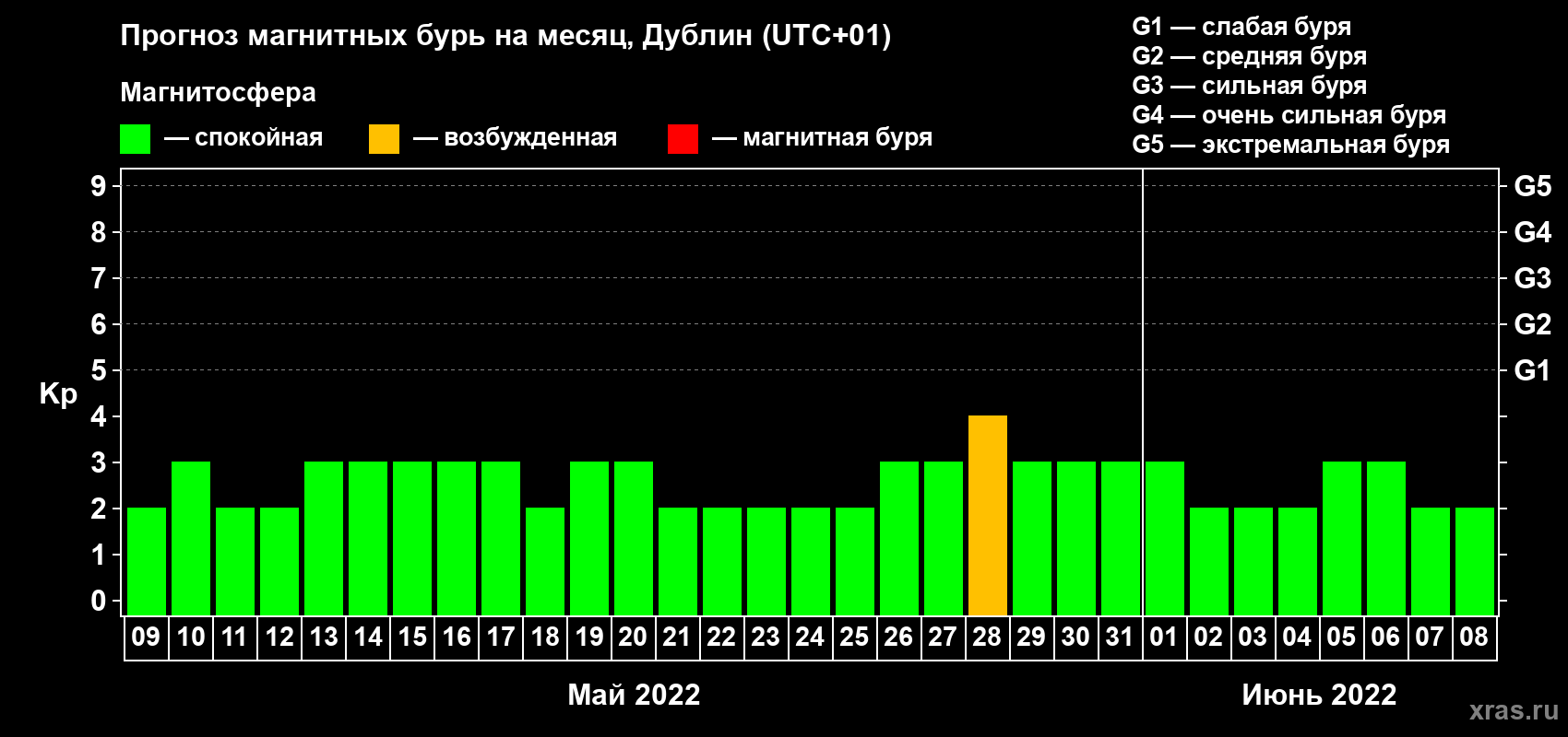 Прогноз магнитных бурь в Дублине — 9 мая 2022 года