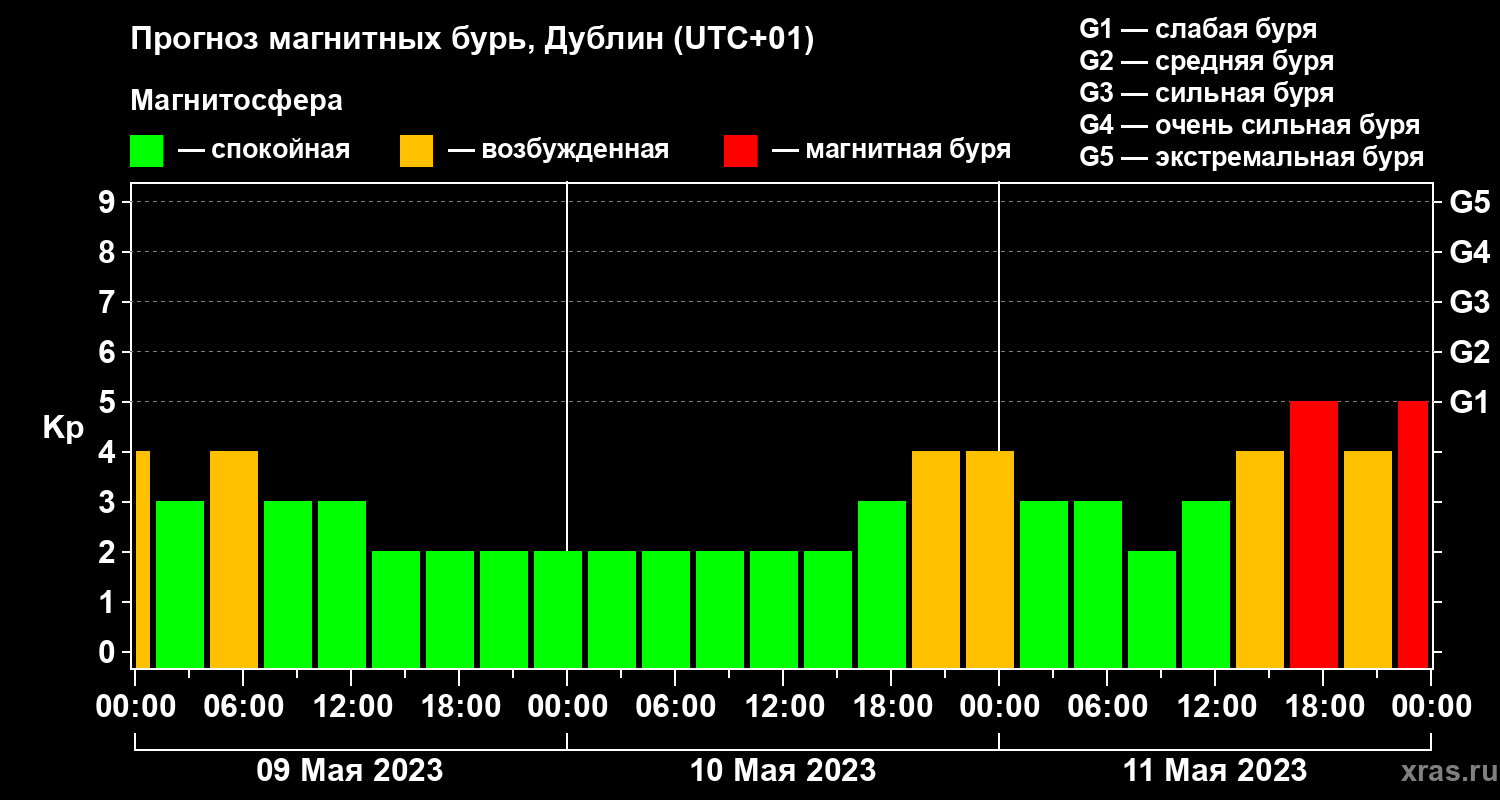 Прогноз магнитных бурь в Дублине — 9 мая 2023 года