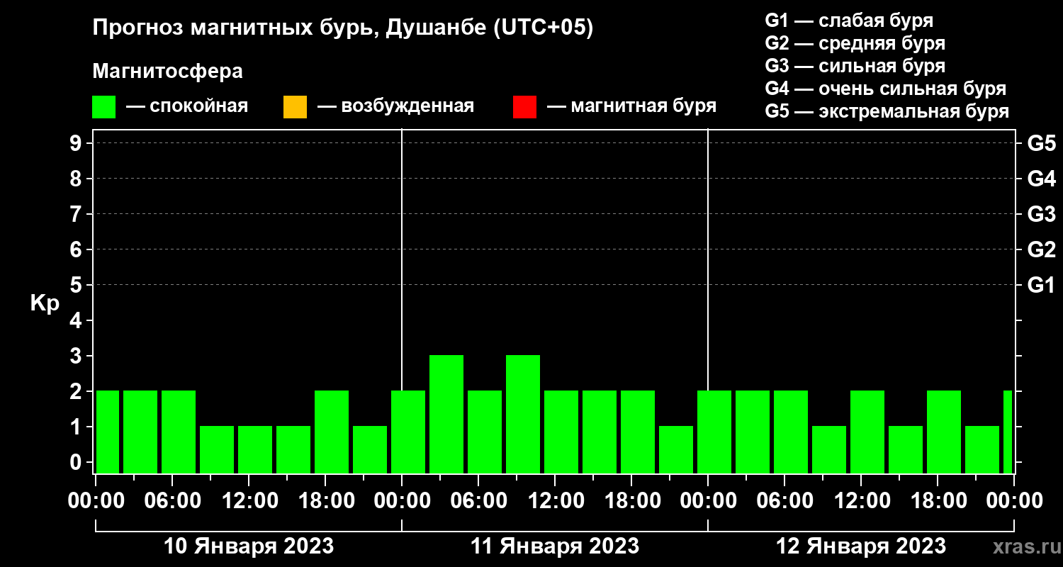 Прогноз магнитных бурь в Душанбе — 10 января 2023 года