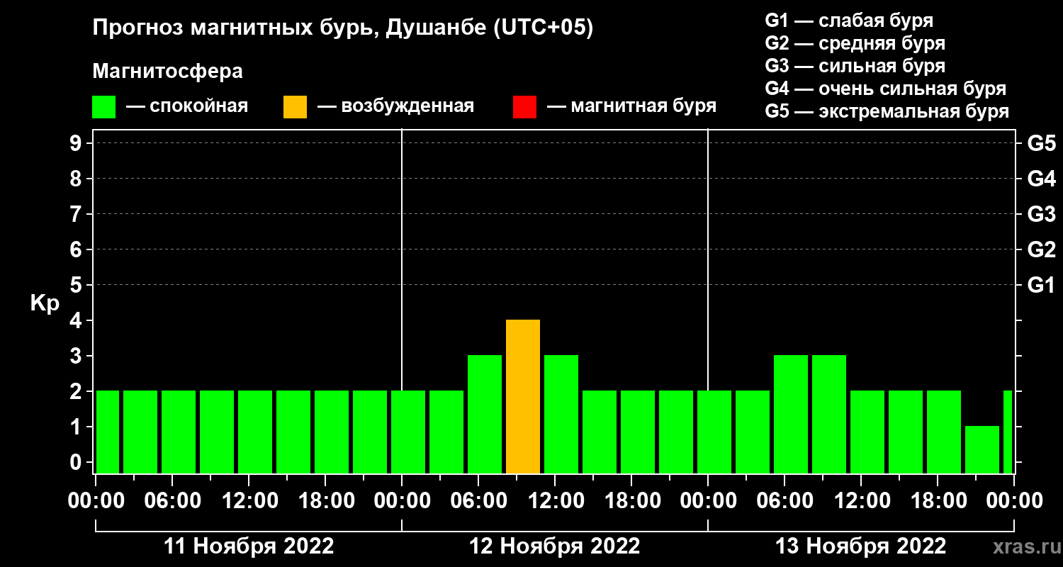 Прогноз магнитных бурь в Душанбе — 11 ноября 2022 года