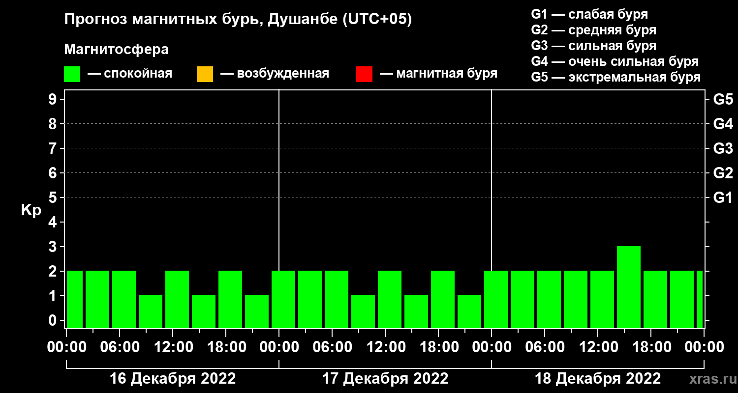 Прогноз магнитных бурь в Душанбе — 16 декабря 2022 года