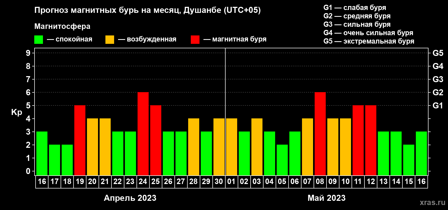 Прогноз магнитных бурь в Душанбе — 16 апреля 2023 года