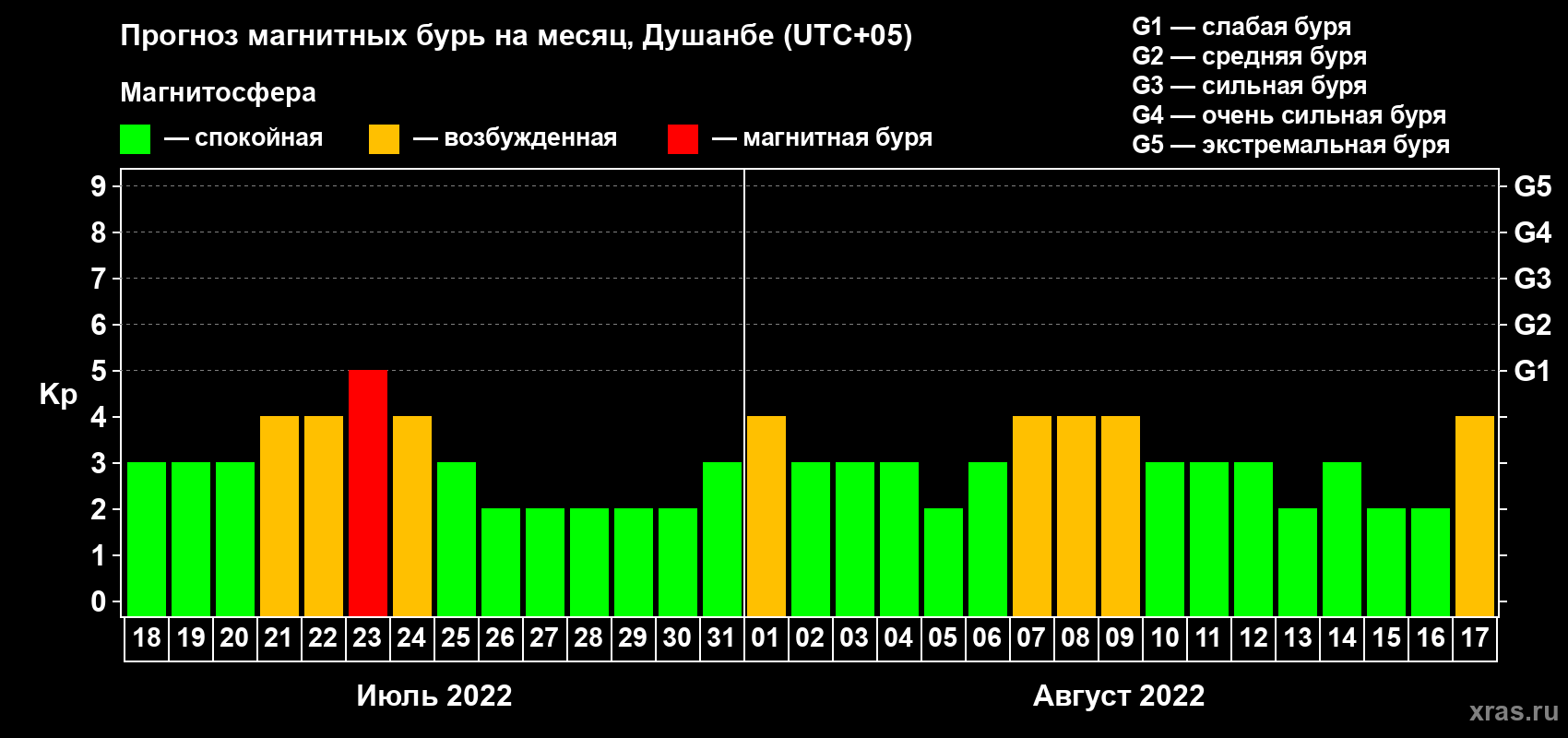 Прогноз магнитных бурь в Душанбе — 18 июля 2022 года