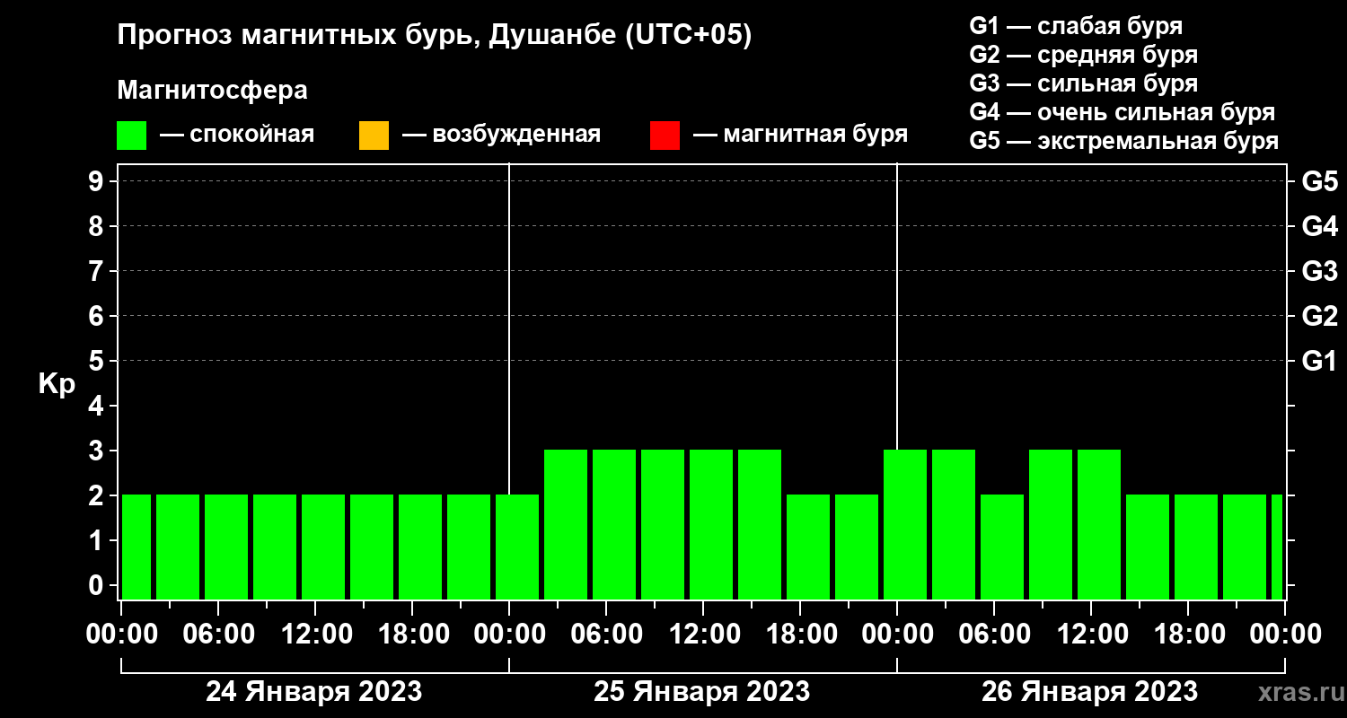 Прогноз магнитных бурь в Душанбе — 24 января 2023 года