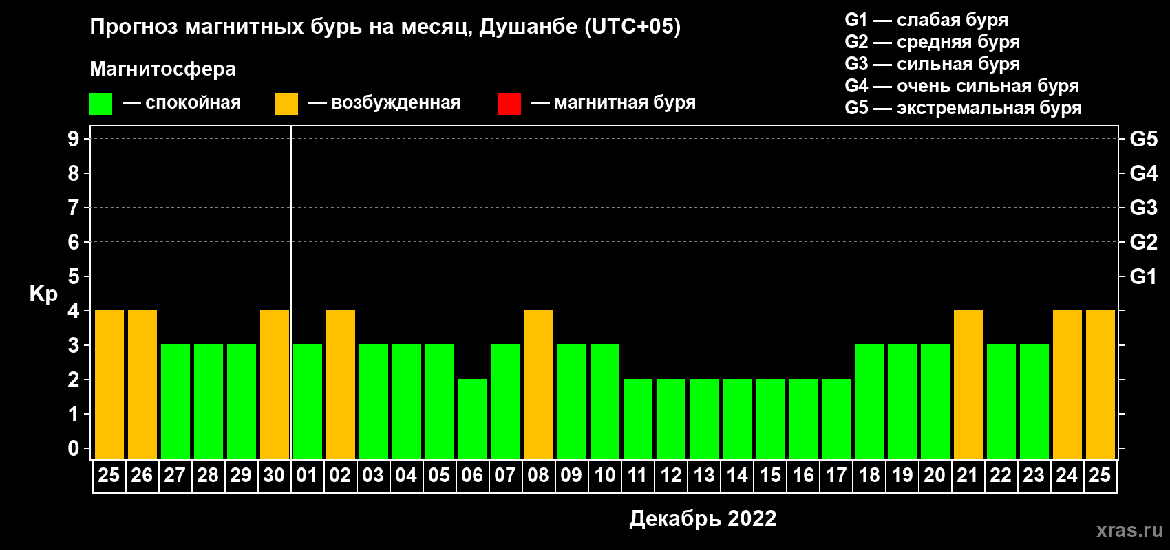 Прогноз магнитных бурь в Душанбе — 25 ноября 2022 года