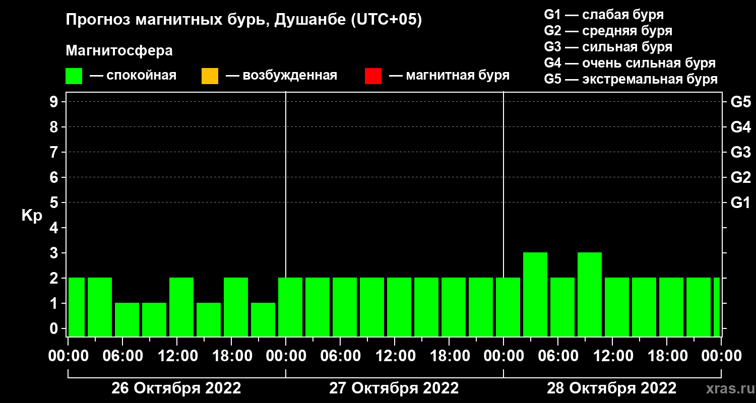 Прогноз магнитных бурь в Душанбе — 26 октября 2022 года