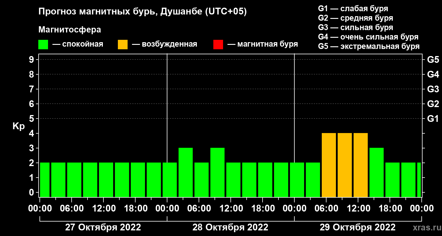 Прогноз магнитных бурь в Душанбе — 27 октября 2022 года