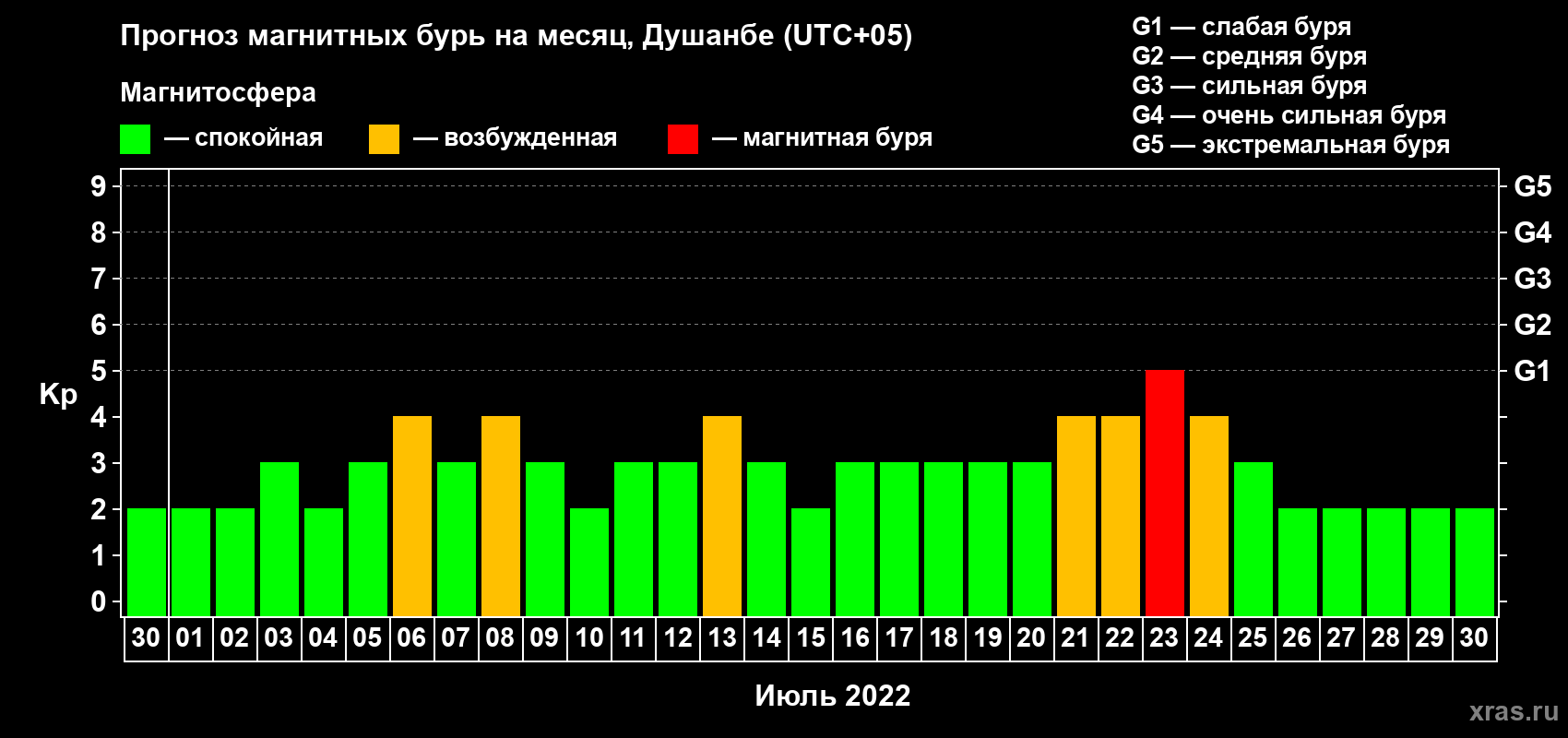 Прогноз магнитных бурь в Душанбе — 30 июня 2022 года