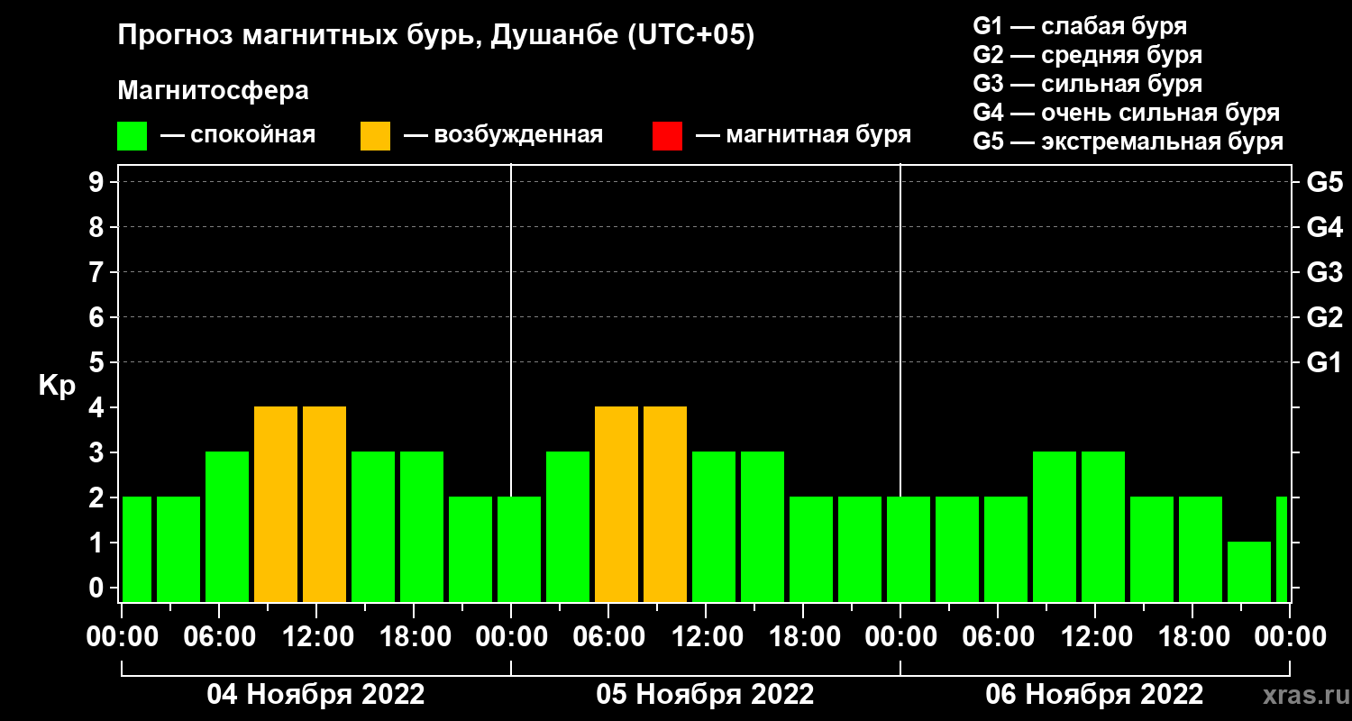 Прогноз магнитных бурь в Душанбе — 4 ноября 2022 года
