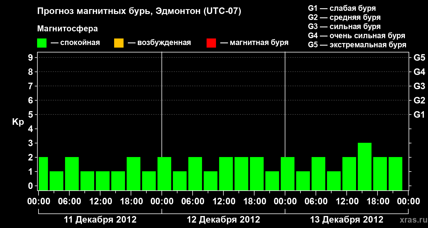 Прогноз магнитных бурь в Эдмонтоне — 11 декабря 2012 года