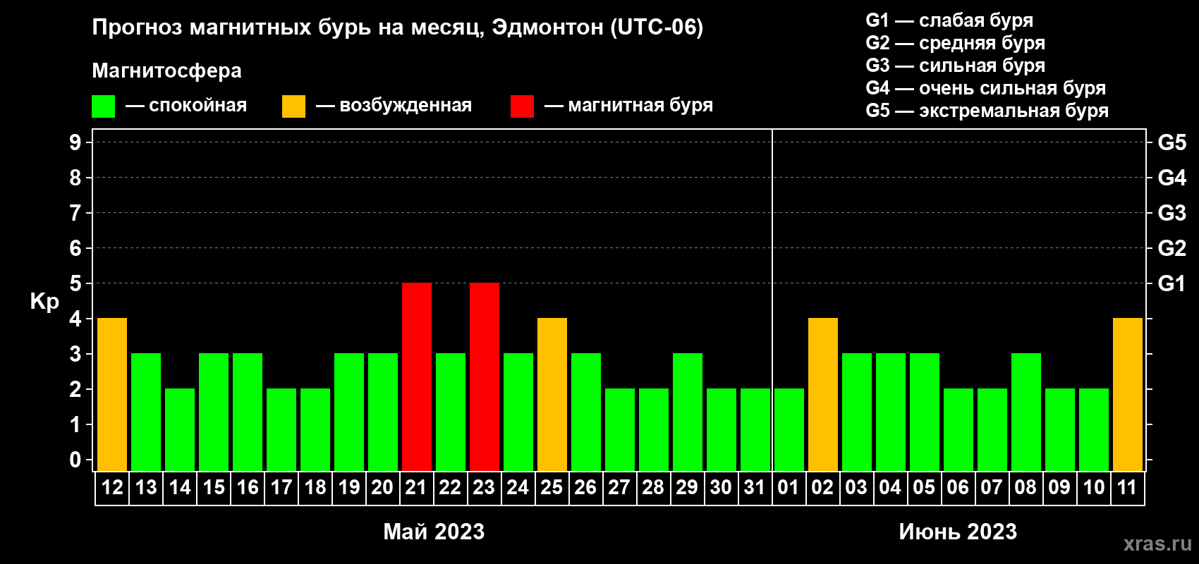 Прогноз магнитных бурь в Эдмонтоне — 12 мая 2023 года