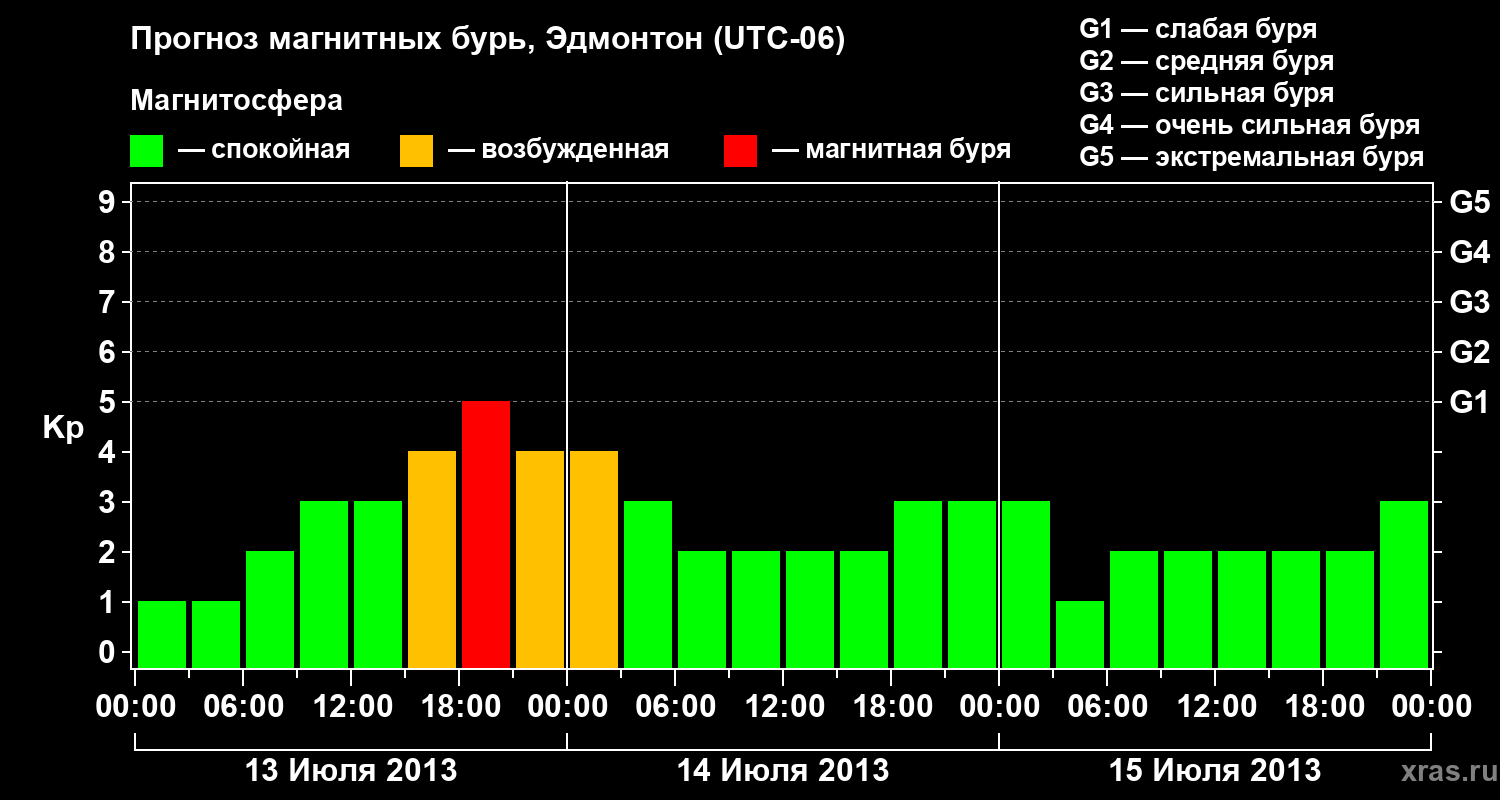 Прогноз магнитных бурь в Эдмонтоне на 13 июля 2013 года