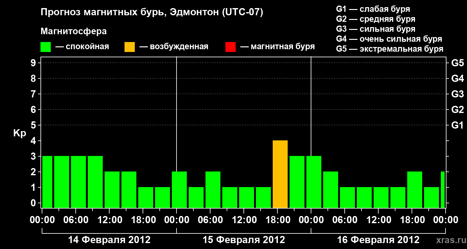 Прогноз магнитных бурь в Эдмонтоне на 14 февраля 2012 года