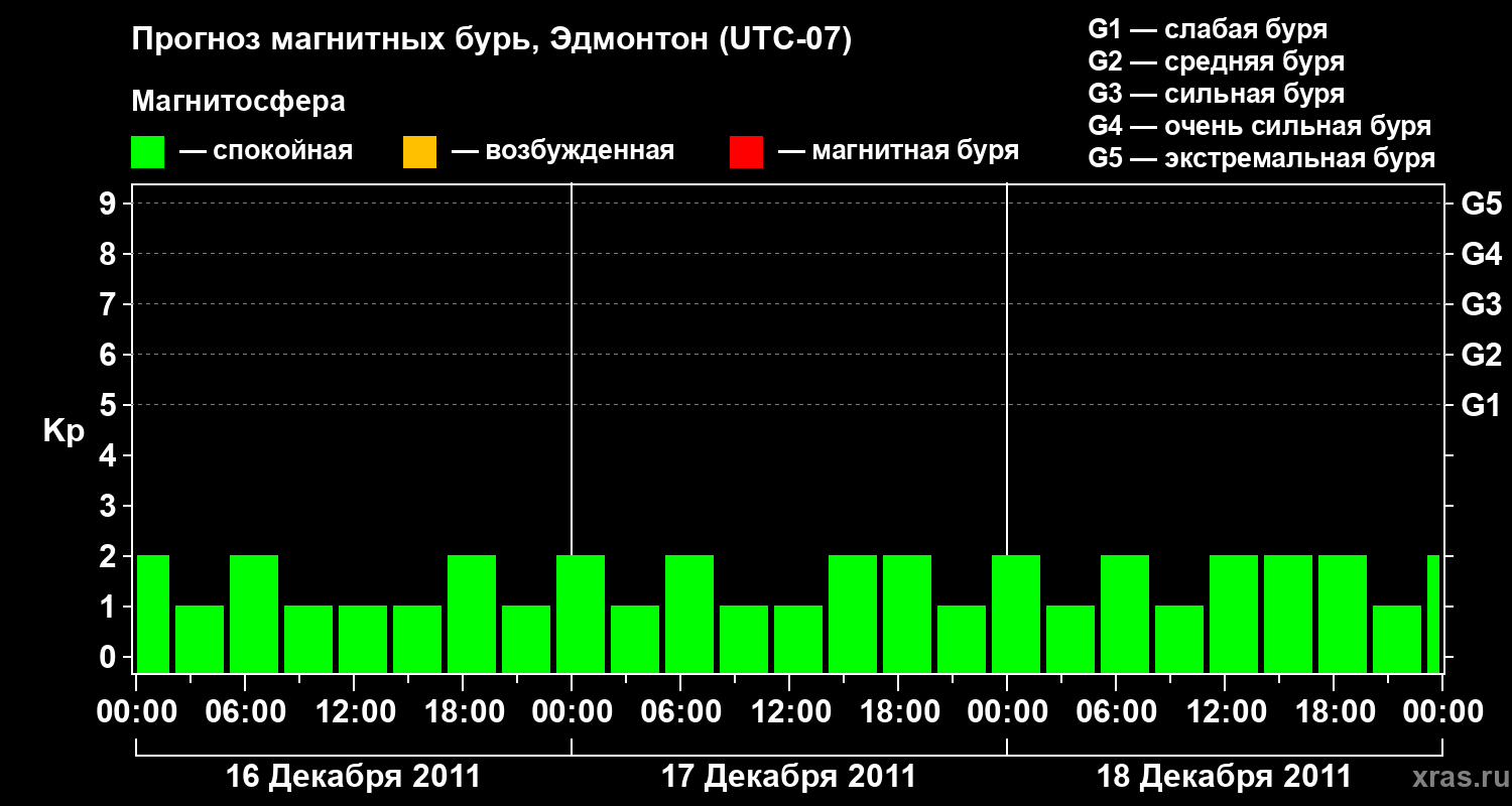 Прогноз магнитных бурь в Эдмонтоне — 16 декабря 2011 года