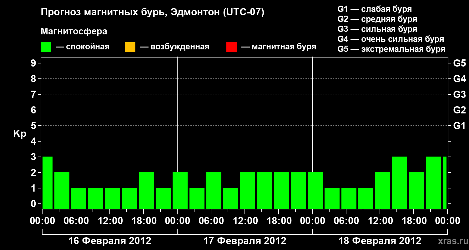 Прогноз магнитных бурь в Эдмонтоне — 16 февраля 2012 года
