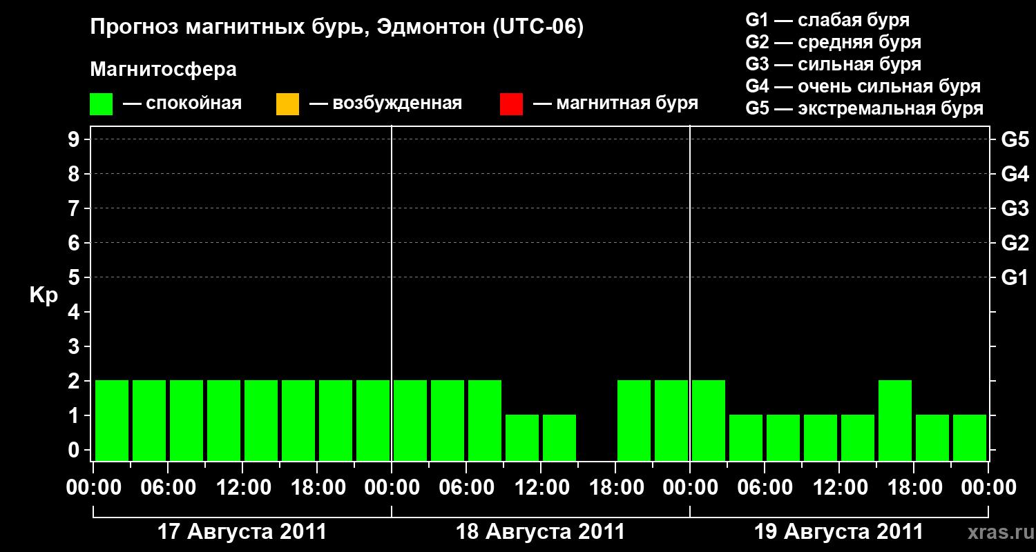 Прогноз магнитных бурь в Эдмонтоне на 17 августа 2011 года