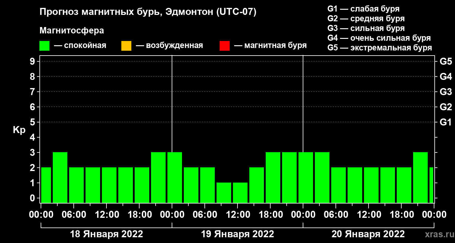 Прогноз магнитных бурь в Эдмонтоне на 18 января 2022 года