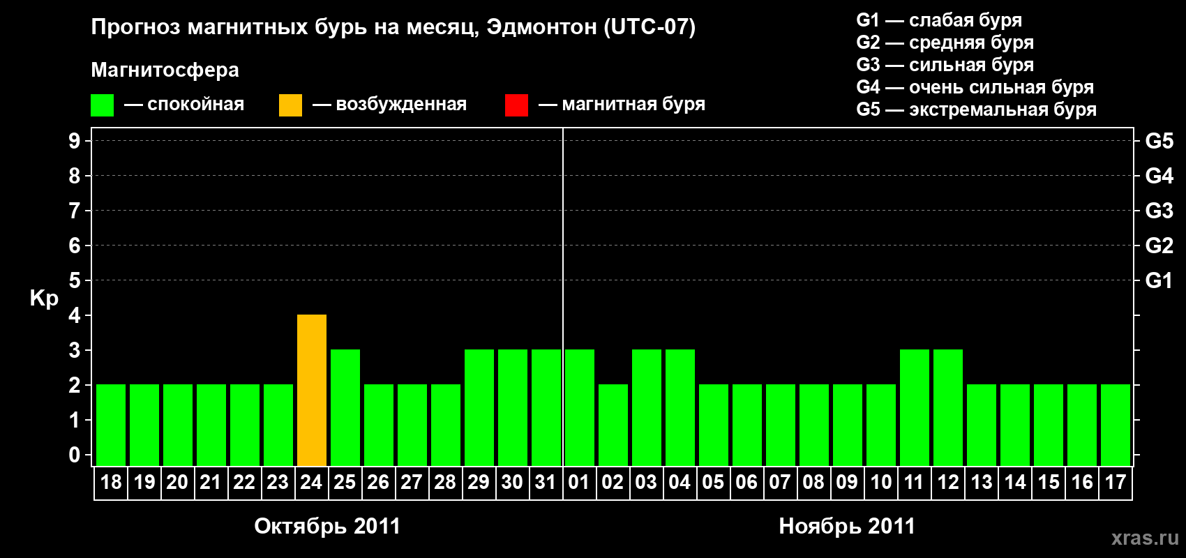Прогноз магнитных бурь в Эдмонтоне — 18 октября 2011 года