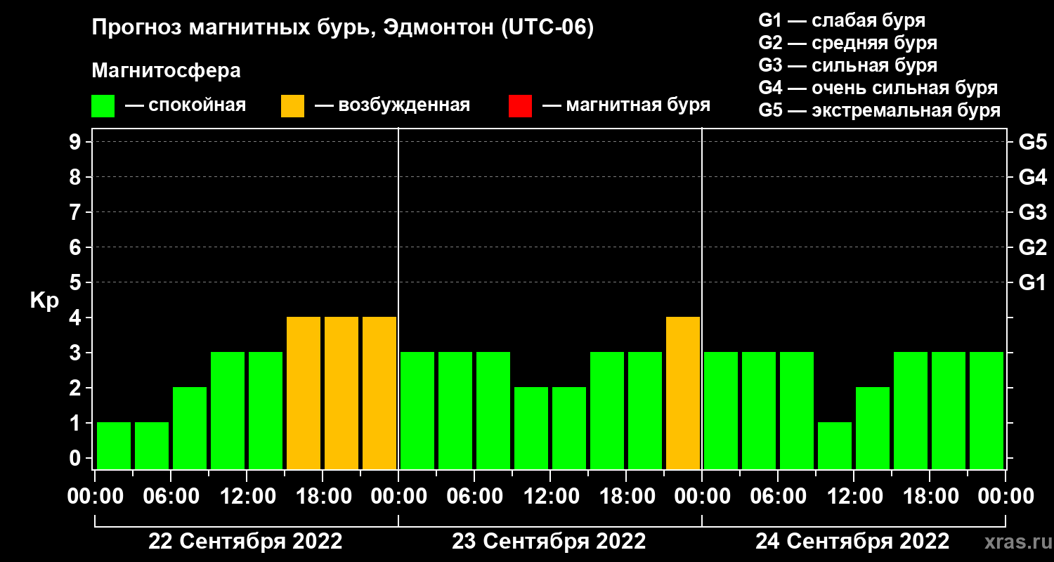Прогноз магнитных бурь в Эдмонтоне на 22 сентября 2022 года
