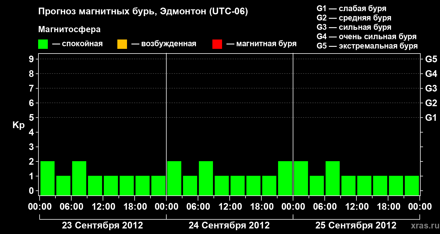 Прогноз магнитных бурь в Эдмонтоне — 23 сентября 2012 года