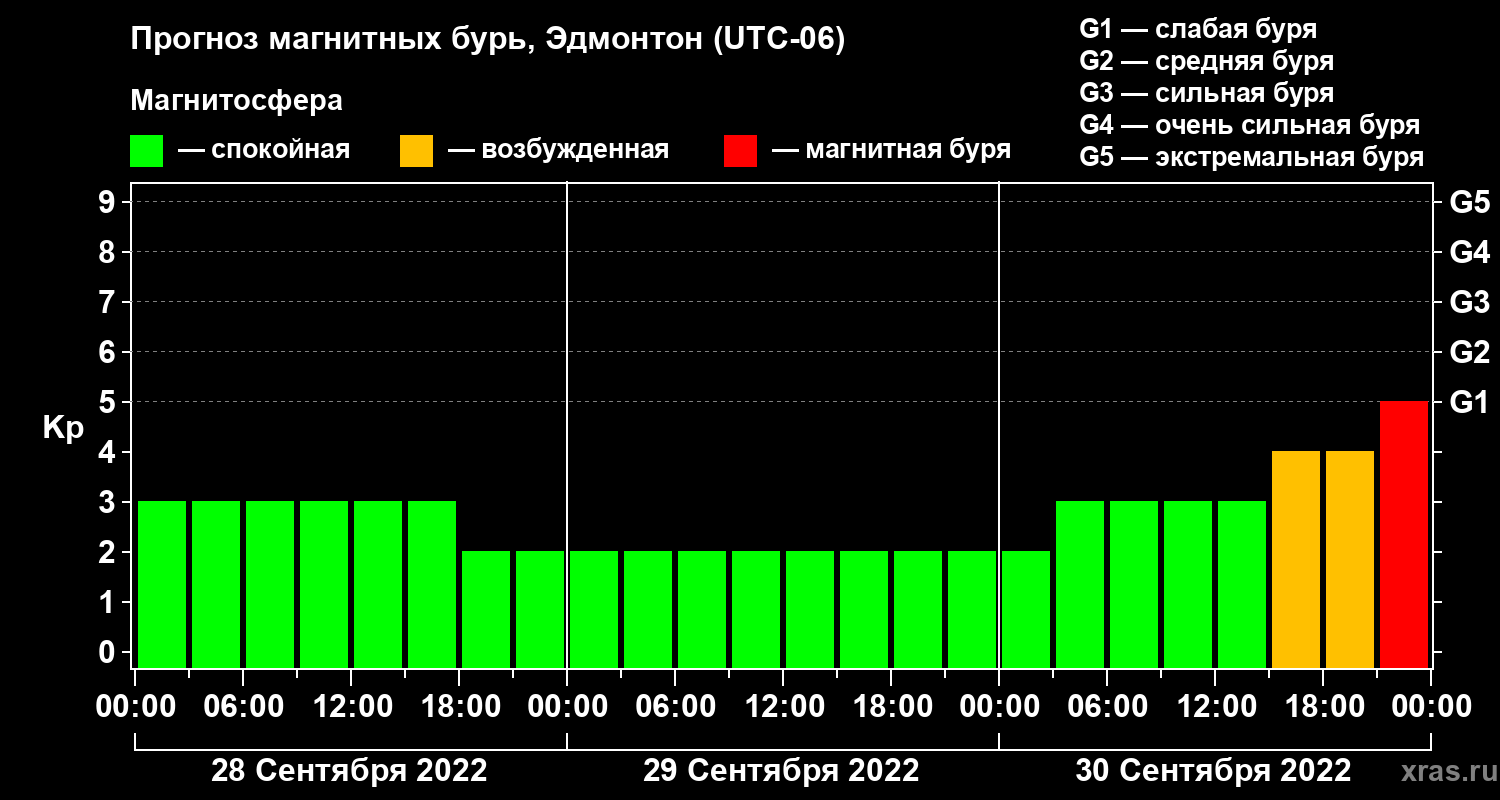 Прогноз магнитных бурь в Эдмонтоне на 28 сентября 2022 года
