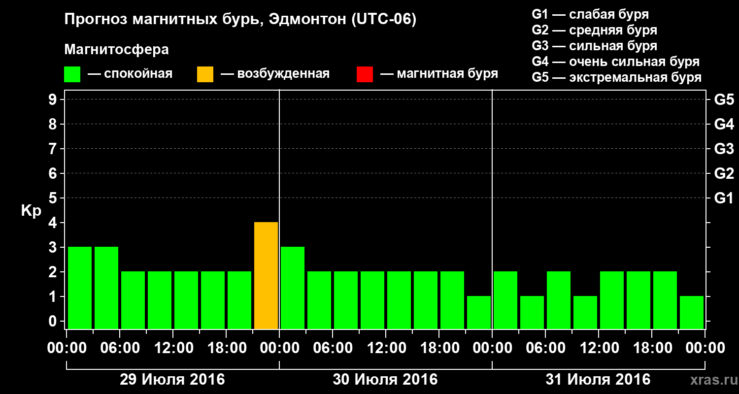 Прогноз магнитных бурь в Эдмонтоне на 29 июля 2016 года