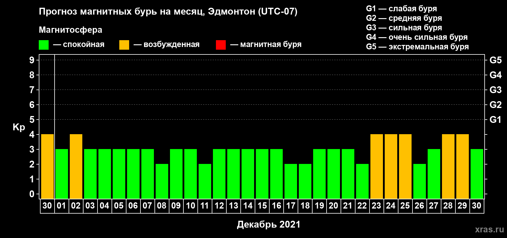 Прогноз магнитных бурь в Эдмонтоне — 30 ноября 2021 года