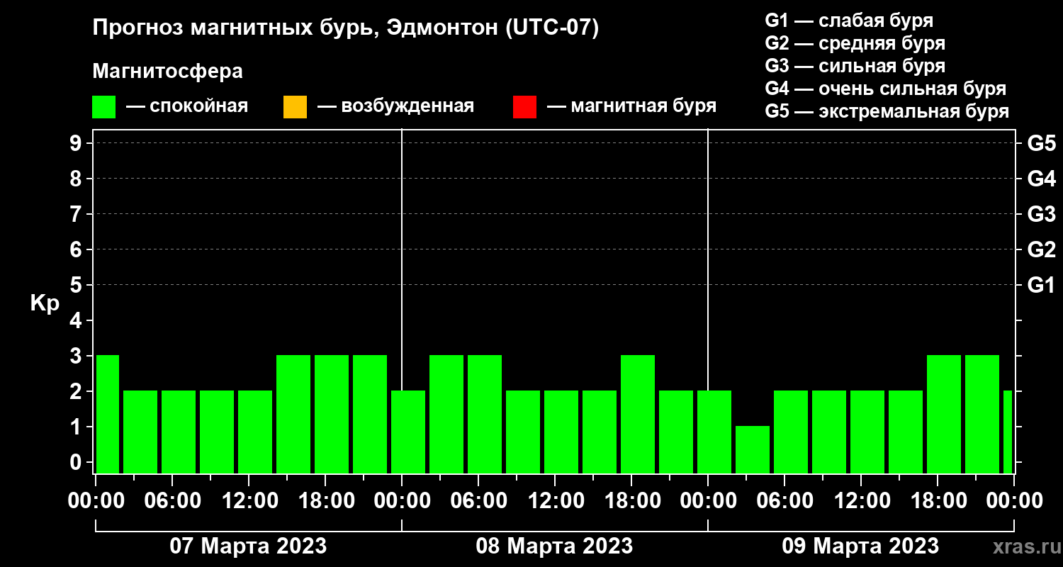 Прогноз магнитных бурь в Эдмонтоне на 7 марта 2023 года