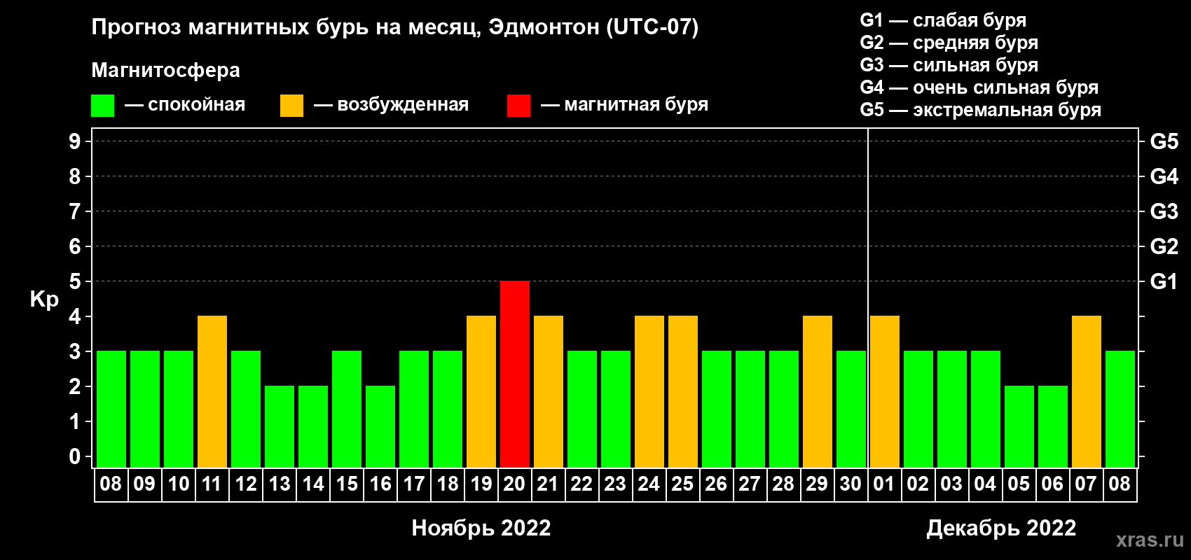 Прогноз магнитных бурь в Эдмонтоне — 8 ноября 2022 года