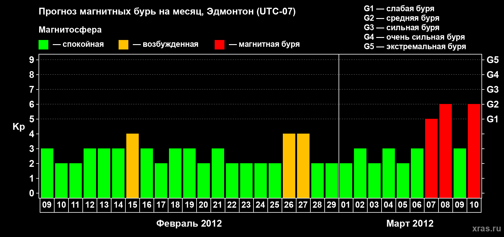 Прогноз магнитных бурь в Эдмонтоне — 9 февраля 2012 года
