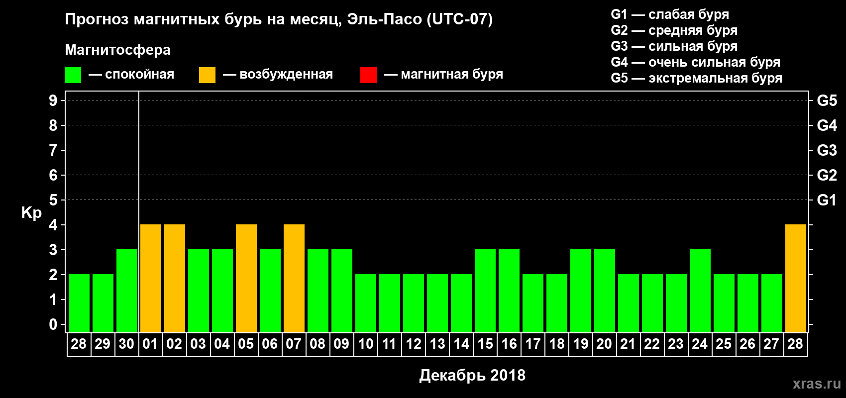 Прогноз магнитных бурь Эль-Пасо — 28 ноября 2018 года