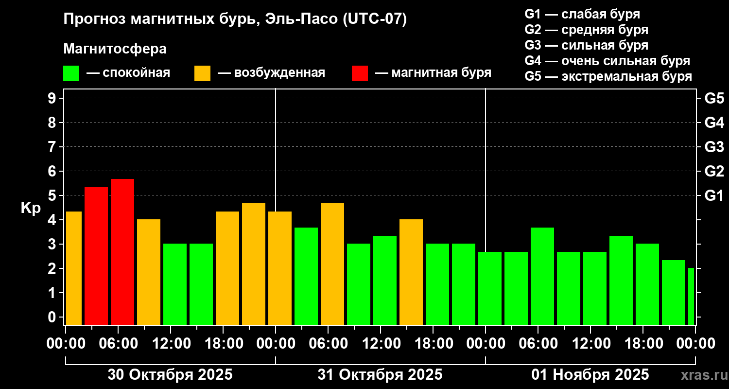 Прогноз магнитных бурь Эль-Пасо на 30 октября 2025 года