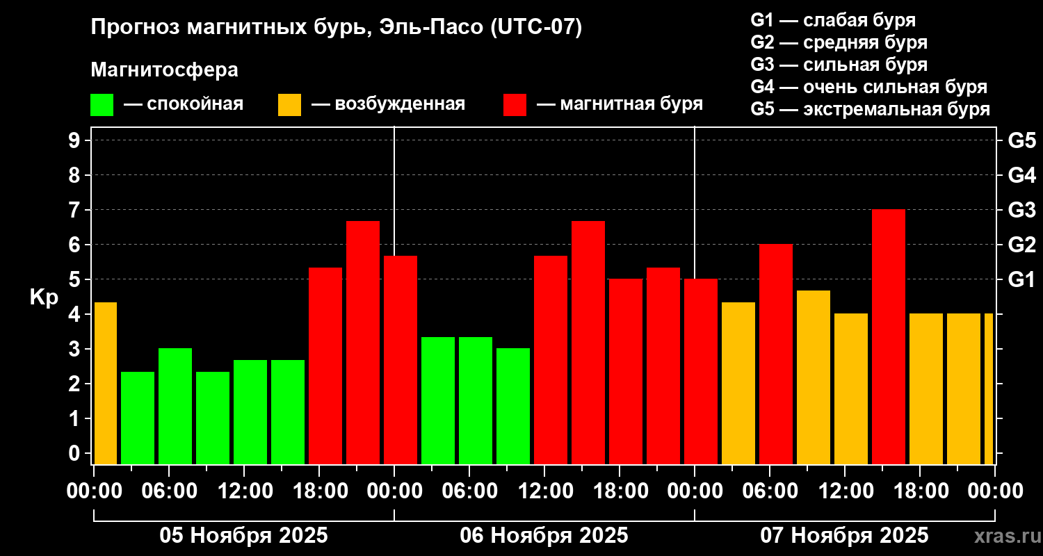 Прогноз магнитных бурь Эль-Пасо — 5 ноября 2025 года