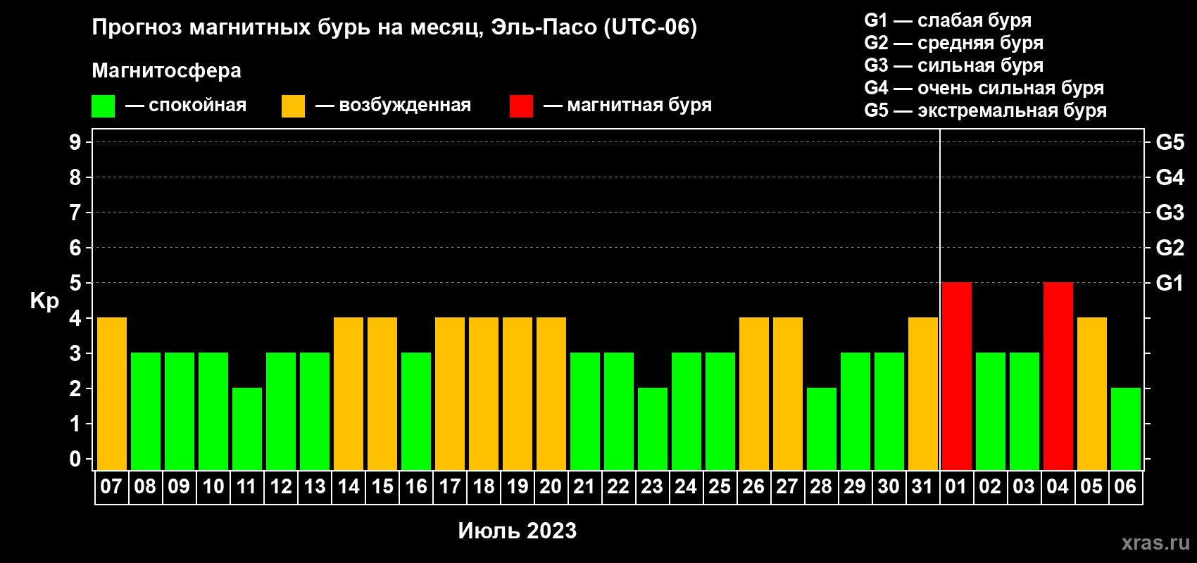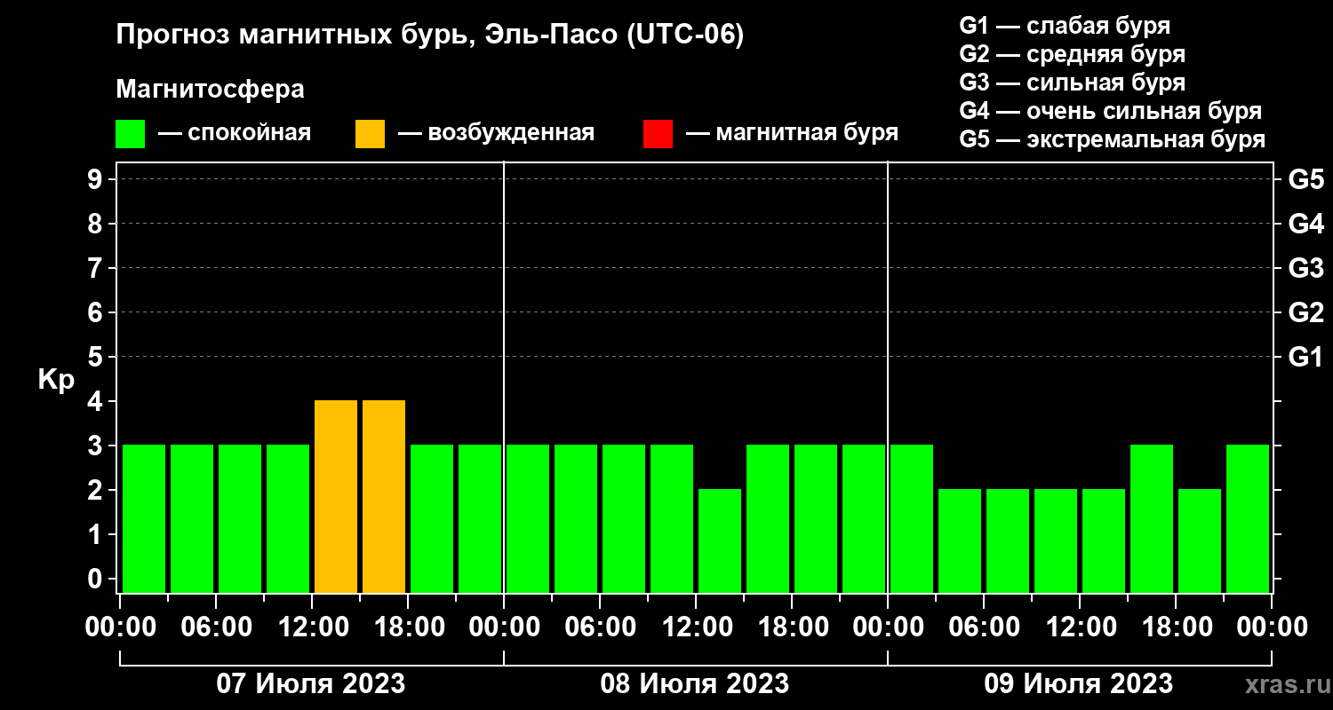 Прогноз магнитных бурь Эль-Пасо — 7 июля 2023 года