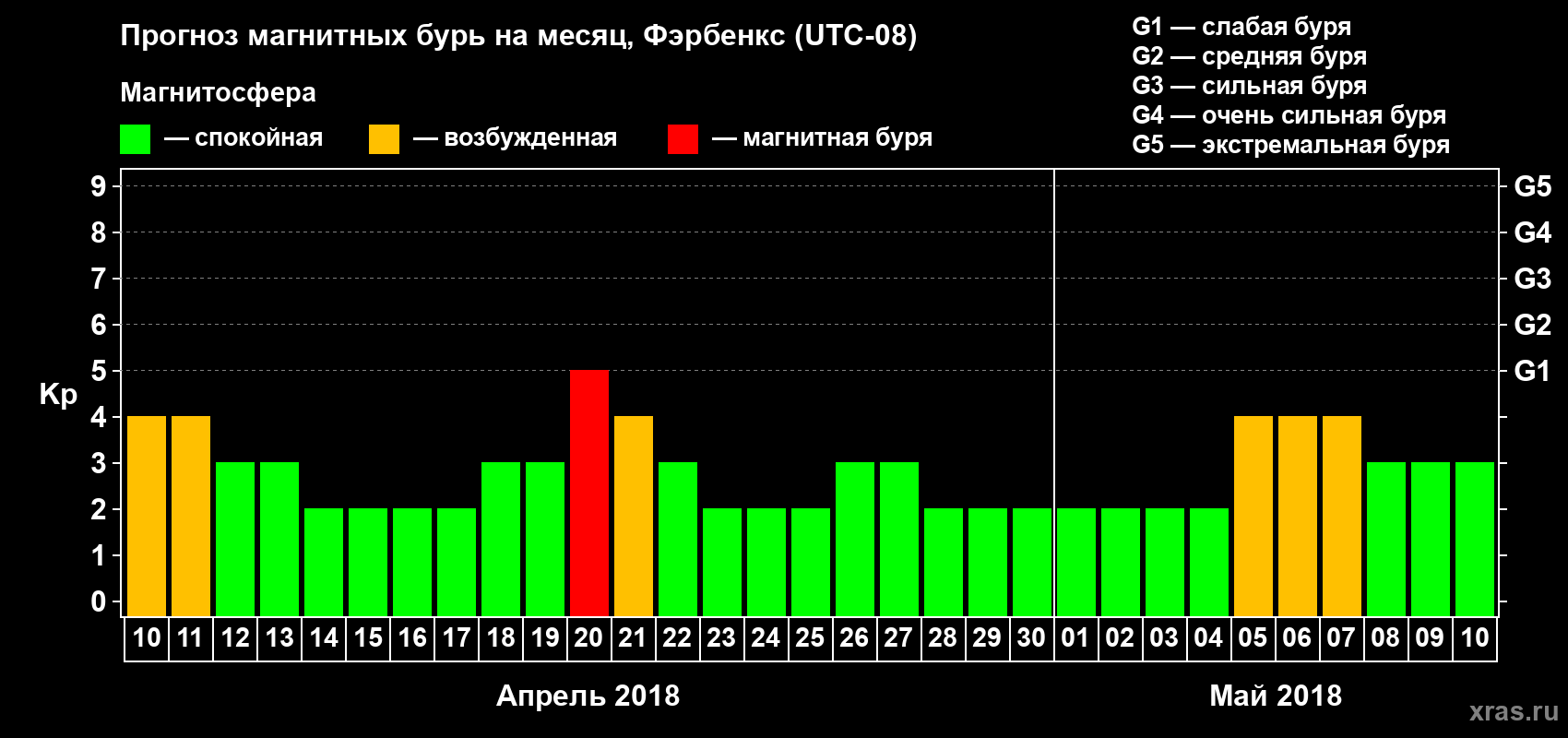 Прогноз магнитных бурь в Фэрбенксе — 10 апреля 2018 года