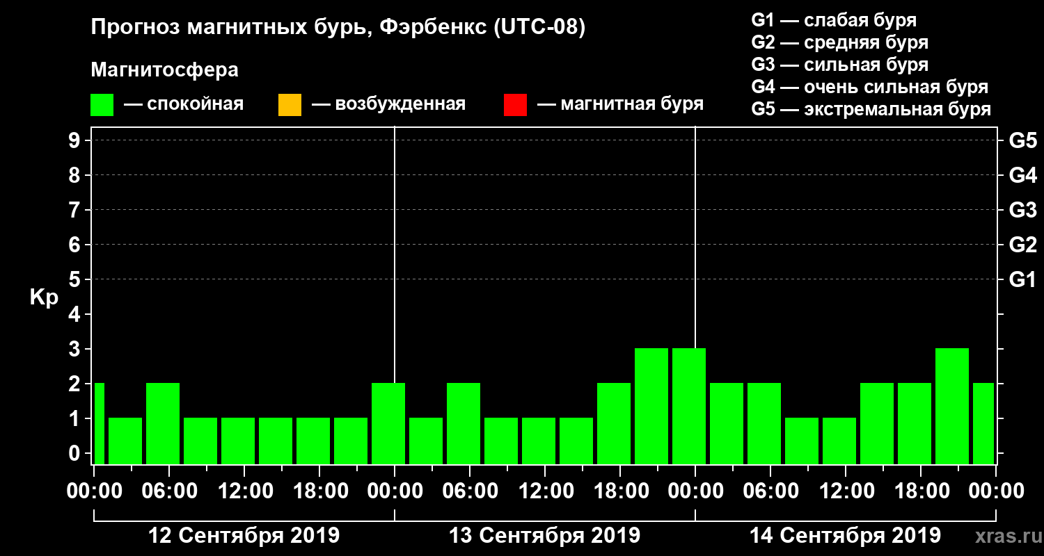 Прогноз магнитных бурь в Фэрбенксе — 12 сентября 2019 года